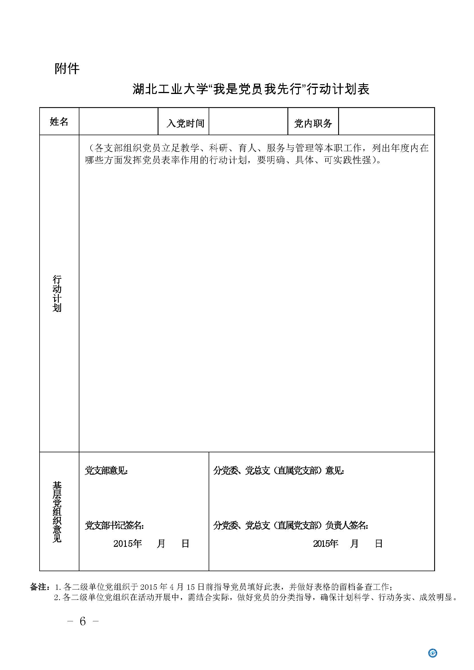 附件:湖北工业大学“我是党员我先行”行动计划表