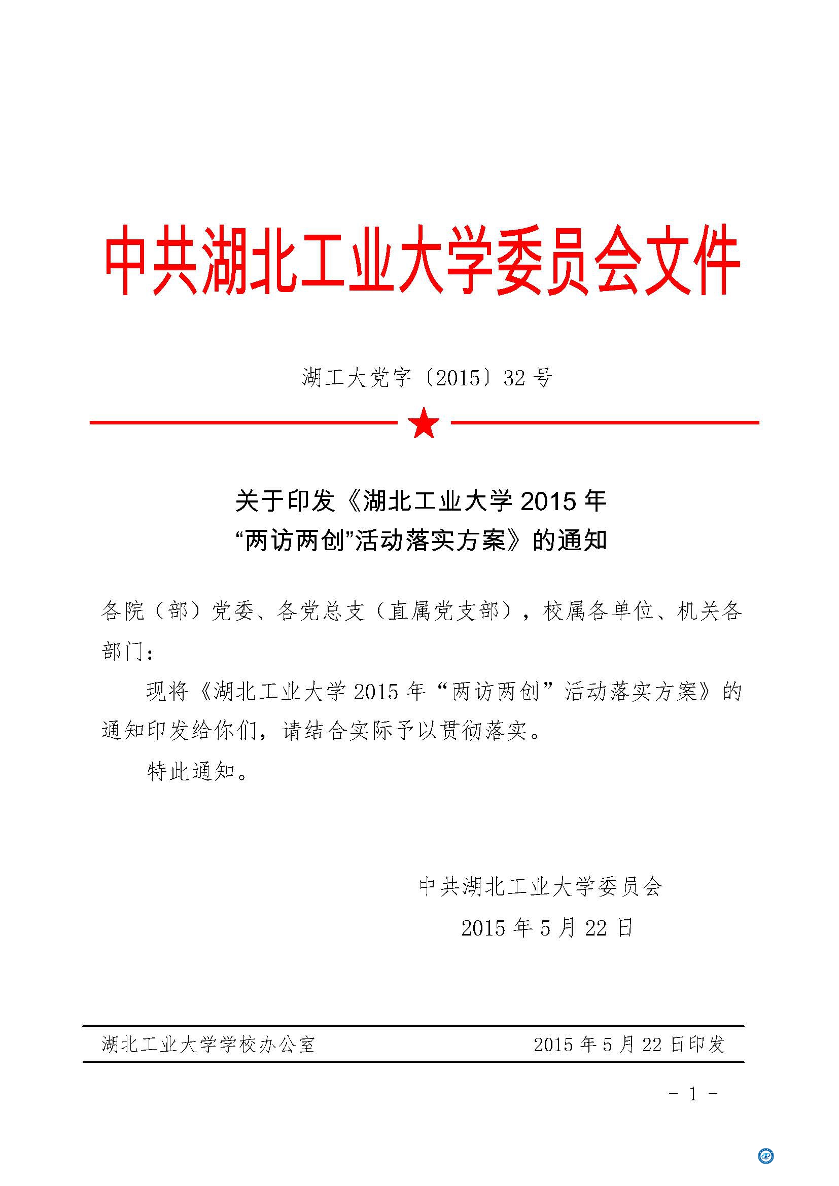 附件:1.湖北工业大学2015年度“两访两创”活动校领导访谈情况安排表