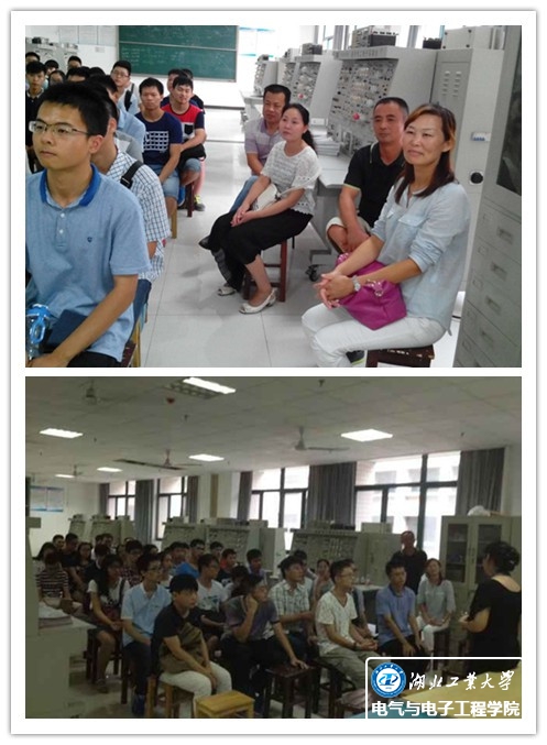 在2015级新生入学报到阶段,电气学院邀请学生家长参加班级的第一次班会。9月7日下午4:00,电气与电子工程学院15级电类4班在实训楼309召开了一场别开生面的新学年见面会。此次班会特别邀请了新生家长一起探讨如何帮助新生尽快适应大学生活。会议由班导师罗宣梅主持。