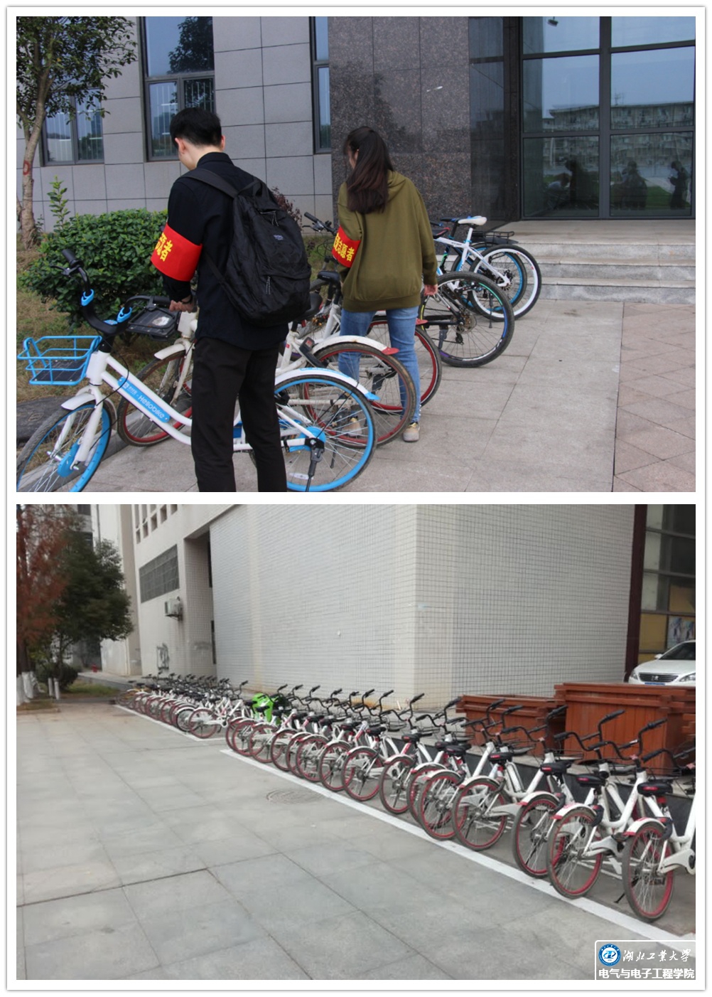 此外,“雷锋月-共享单车”志愿者活动也在各个学校进行,参与活动人员被分成三组分别前往湖北工业大学电院、武昌首义学院、武汉城市职业学院,规整共享单车的摆放,并张贴宣传小标识,提倡绿色出行、文明出行。