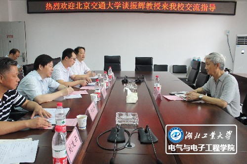 刘德富首先代表学校对谈振辉莅临我校表示欢迎,并介绍了我校教学、科研、人才培养及师资队伍等方面情况。接着,张道德介绍了我校开展专业认证工作情况。电气学院院长席自强结合学院电子信息工程专业和通信工程专业已有基础和认证前期准备工作做了专题汇报。